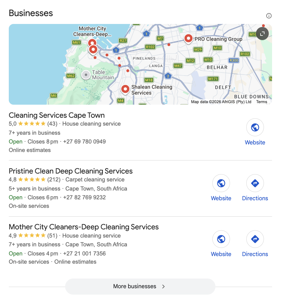 When someone types "cleaning service near me" into Google search, a set of local results appears above everything else – the map pack. If you're not in that pack, you're invisible to the highest-intent buyers in your area. Your Google Business Profile is the single most important piece of local SEO you can control.