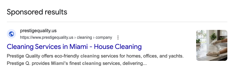 Google Ads is the fastest way to fill gaps in your schedule – period. When someone searches "house cleaning in [your city]" or "hire cleaners near me," they're not browsing. They're ready to book. You want to be the first result they see.